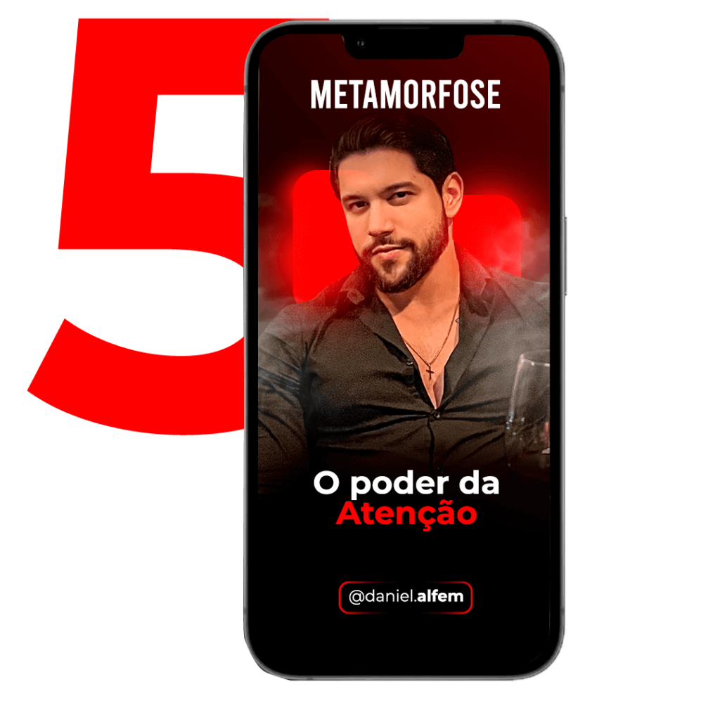 Fundador da sua própria marca e criador do Metamorfose 5.0, Daniel Alfem se consolidou como uma autoridade absoluta para homens que desejam evoluir profundamente, conquistar respeito, criar relações saudáveis e viver com propósito, presença e masculinidade verdadeira.